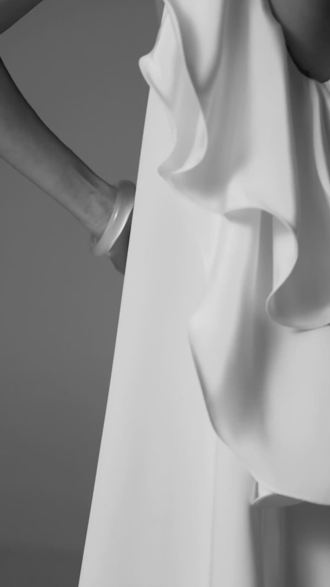 One-shoulder neckline jumpsuit with petal detailing on waist and silk crepe shoulder.