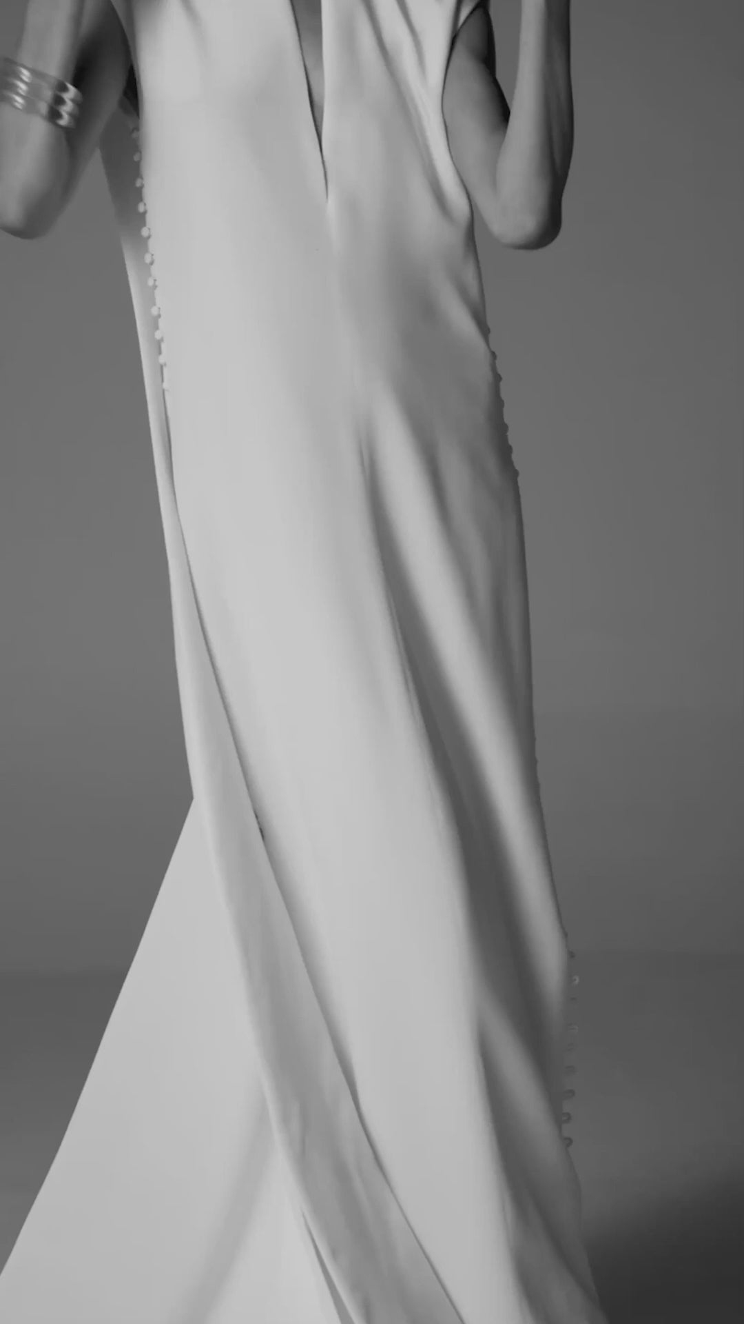 Tunic dress with a Mao collar and V-neckline, loop detail on the sides and a long cape on the back in silk crepe.